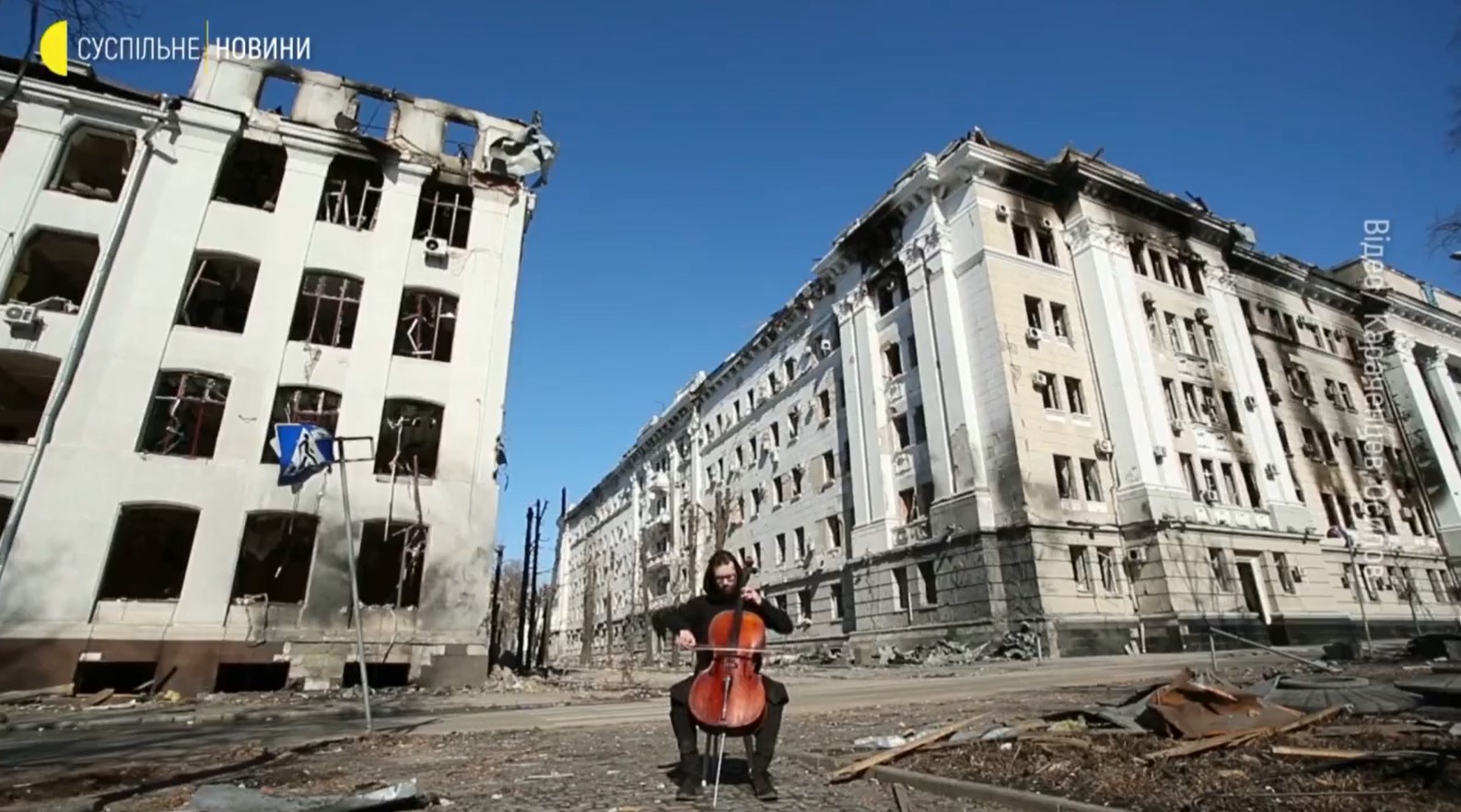 Еден човек, едно виолончело и еден уништен град од еден крвожеден диктатор. Градот пак ќе го гледаме убав, а диктаторот нема да биде вечно на власт. Слава Україні! Героям слава!