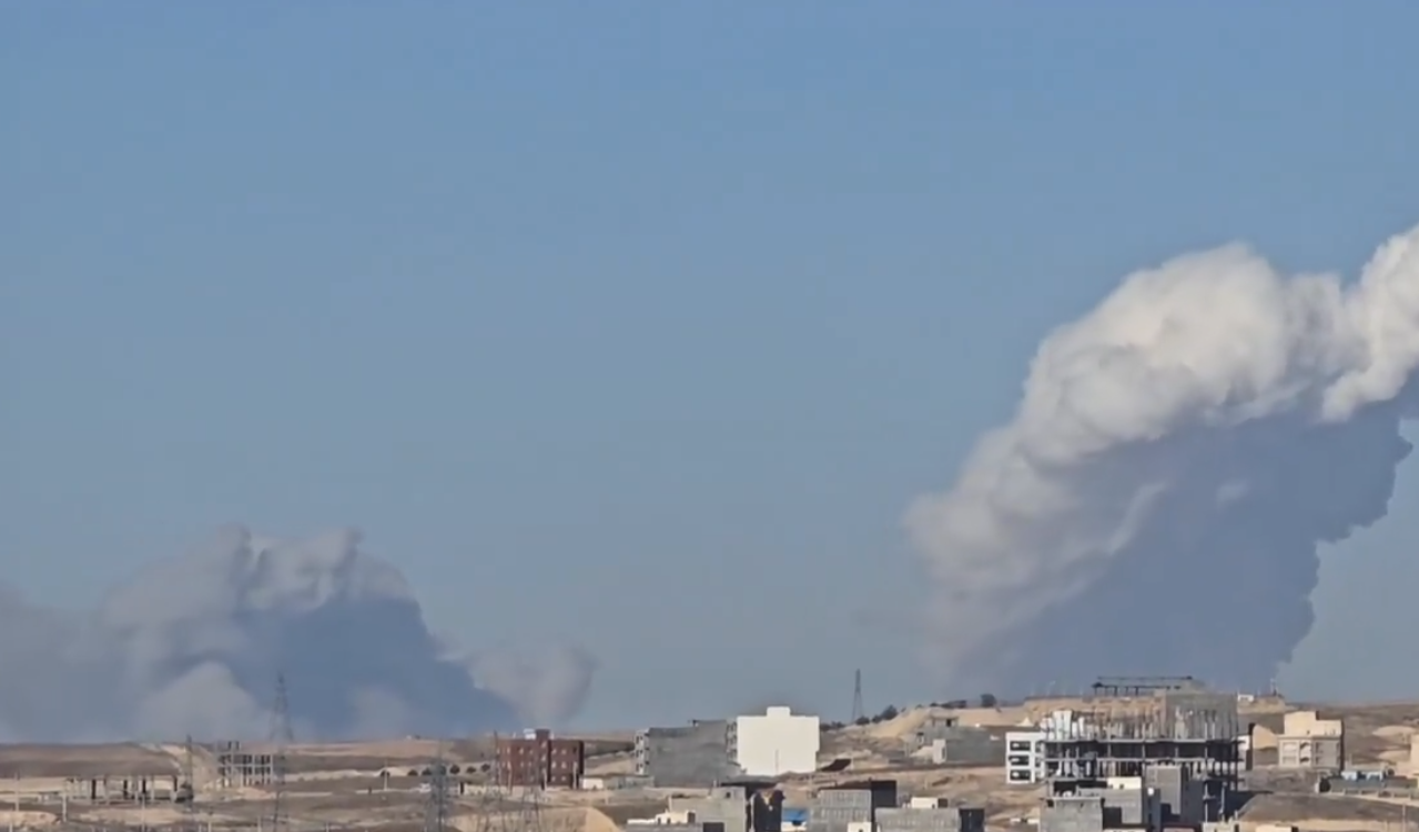 На снимките може да се слушнат експлозии, а најмалку три облаци чад се издигаат од планинска област.