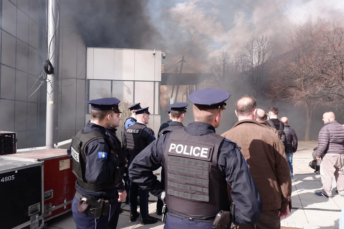 Поддржувачите на вонпарламентарната Социјалдемократска партија фрлаа димни бомби околу зградата на Владата во Приштина, незадоволни од Охридскиот договор од минатата недела, со кој беше предвидено формирање на Заедница на српски општини.
