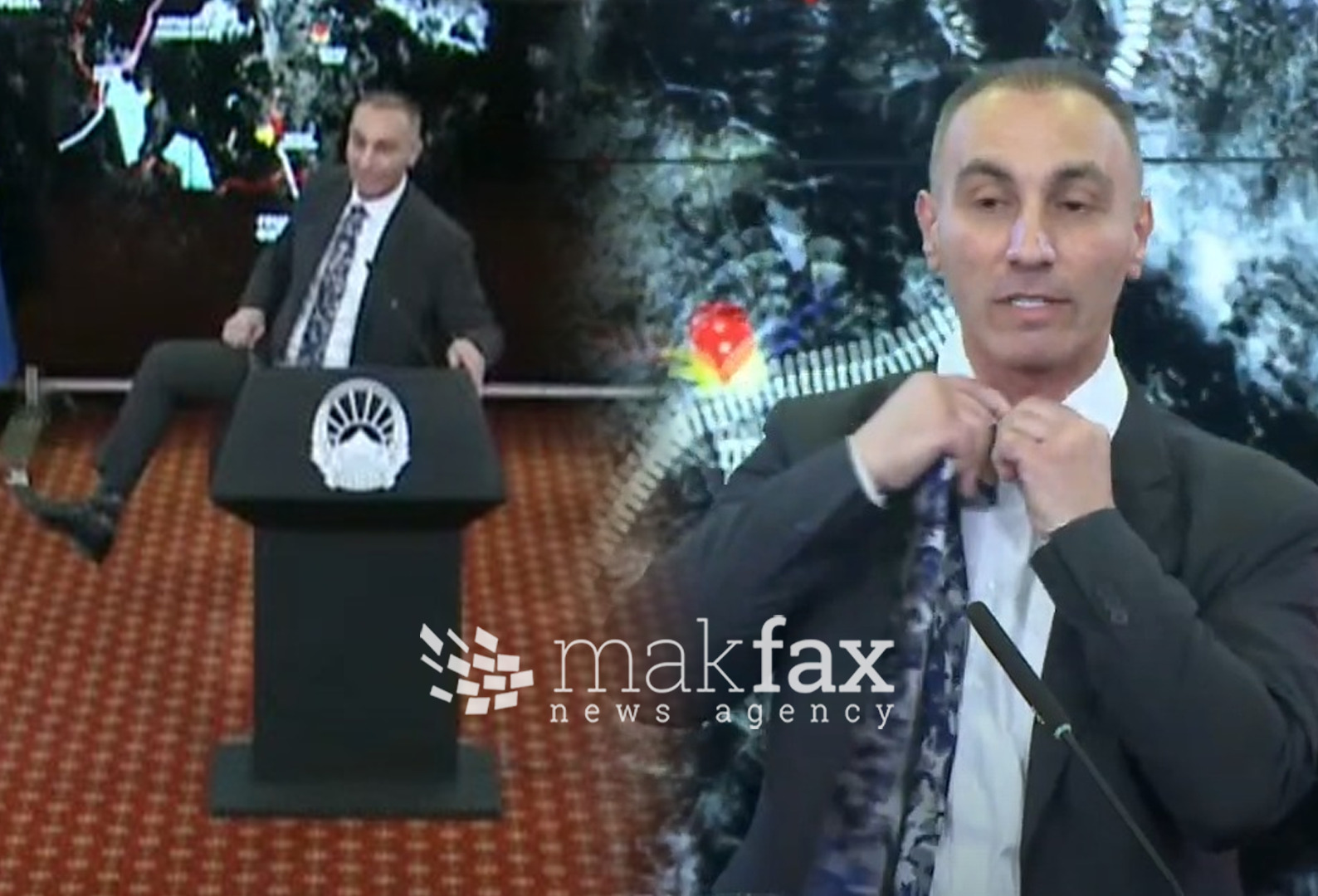 (Видео) Груби во Владата ги покажа чорапите и ја симна вратоврската за да ја подари на новинарот оти била милитантна