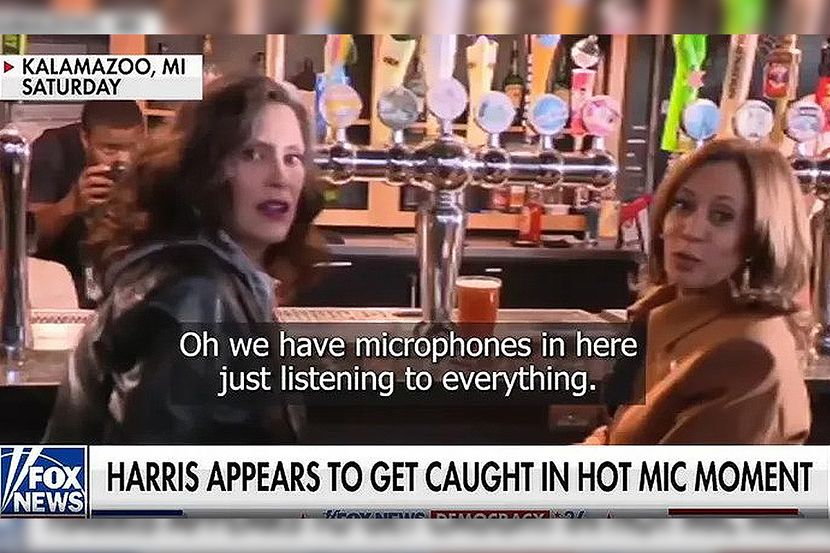 Камала Харис и Витмер во саботата седеле во бар во Каламазу во Мичиген и имале разговор кој изгледал сериозен. Толку сериозна што изгледа дека Камала заборавила дека е опкружена со камери и микрофони.