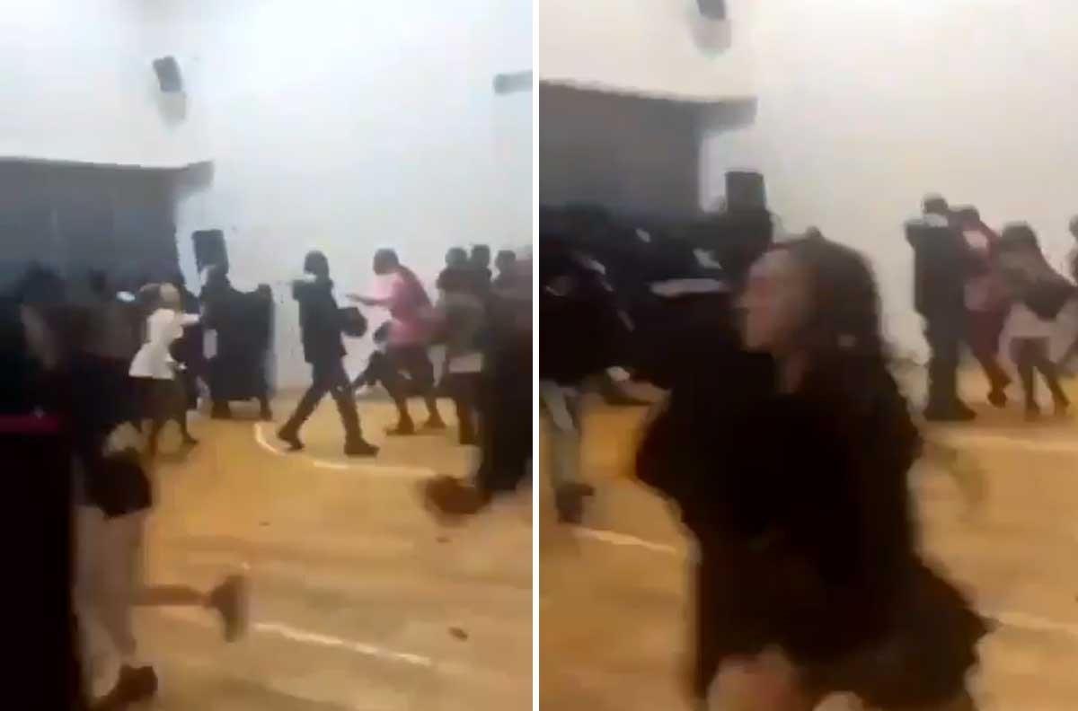 Околу 21 часот упаднале околу 50 млади луѓе во училишната сала, по што избиле тепачки кои траеле до 23 часот.
