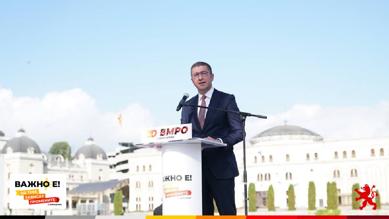 – За секој еден човек во Македонија. За правда која ќе го заштити народот од неправда, каде ќе профункционира судството и обвинителството. Каде ќе има страв од казна и законот ќе важи за секого. Член на ВМРО-ДПМНЕ бил или на друга партија ако стори криминал ќе одговара, изјави Мицкоски.