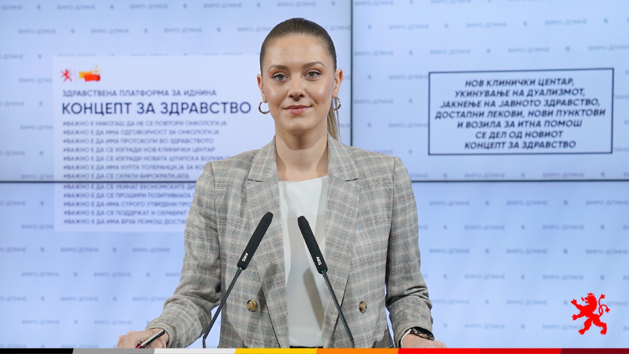 Ова е новиот здравствен концепт, новата платформа за иднина која подразбира целосна трансформација на здравствениот систем. Подобри услови за медицинскиот кадар, и уште подобри услуги за граѓаните“, изјави Марија Митева, портпарол и член на ИК на ВМРО-ДПМНЕ.