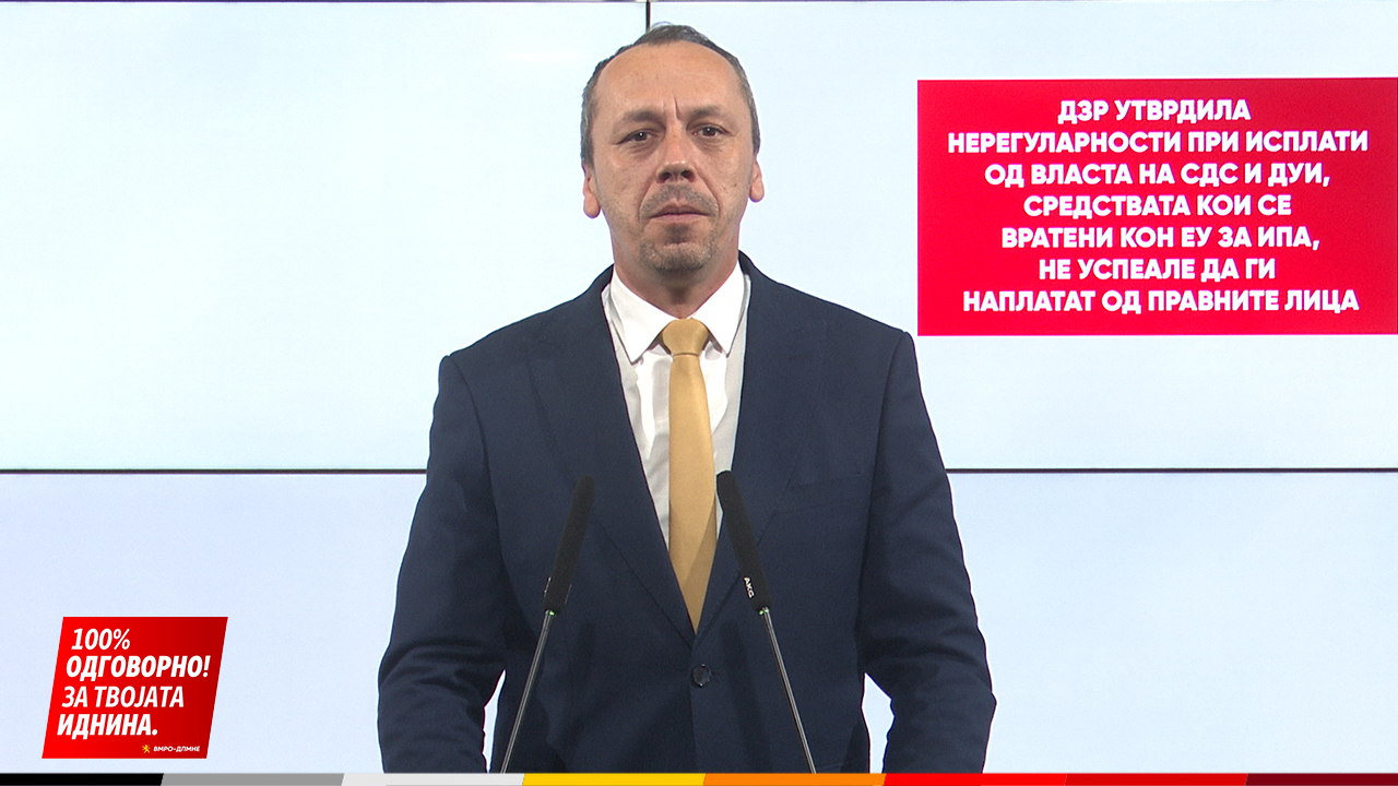 Средствата кои Република Македонија ги вратила кон ЕК, поради злоупотреба со ИПА средства, а како последица на контрола од ОЛАФ, власта на СДС и ДУИ не успеала да ги наплати од правното лице кај кое е утврдена злоупотребата, истакна на прес-конференција Бране Петрушевски, пратеник на ВМРО-ДПМНЕ.