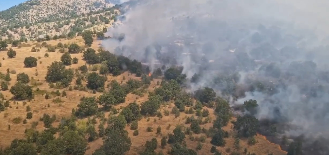 Полициските хеликоптери фрлија над 110 тони вода врз пожарите во Старо Нагоричане и светиниколско
