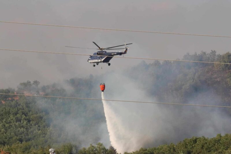 Со хеликоптер на МВР ставен под контрола пожарот кај село Караслари, велешко