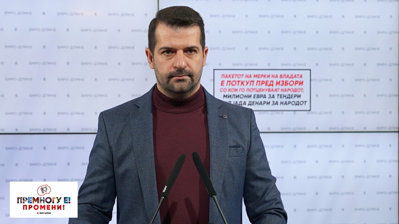 „Со овој пакет на мерки Владата и официјално признава дека владее огромна сиромаштија, дека пензионерите и голем број на семејства се доведени до работ на егзистенција. Суштината и главната поента е што Владата троши 2 милијарди евра за градба на коридори преку фирми на ДУИ и СДС, троши тешки милиони евра за копање во РЕК Битола и компаниите и бизнисите на власта работат одлично, а ваму, за народот даваат по 500 и 1.000 денари за да помогнат. Тој поткуп кој оваа власт го вика помош од 500 и 1.000 денари не вредат ништо кога инфлацијата е двоцифрена, кога сите производи за мала потрошувачка по продавниците вртоглаво растат, кога храната е поскапена за 200% и затоа оваа власт го потценува народот со овој поткуп“, додава тој.