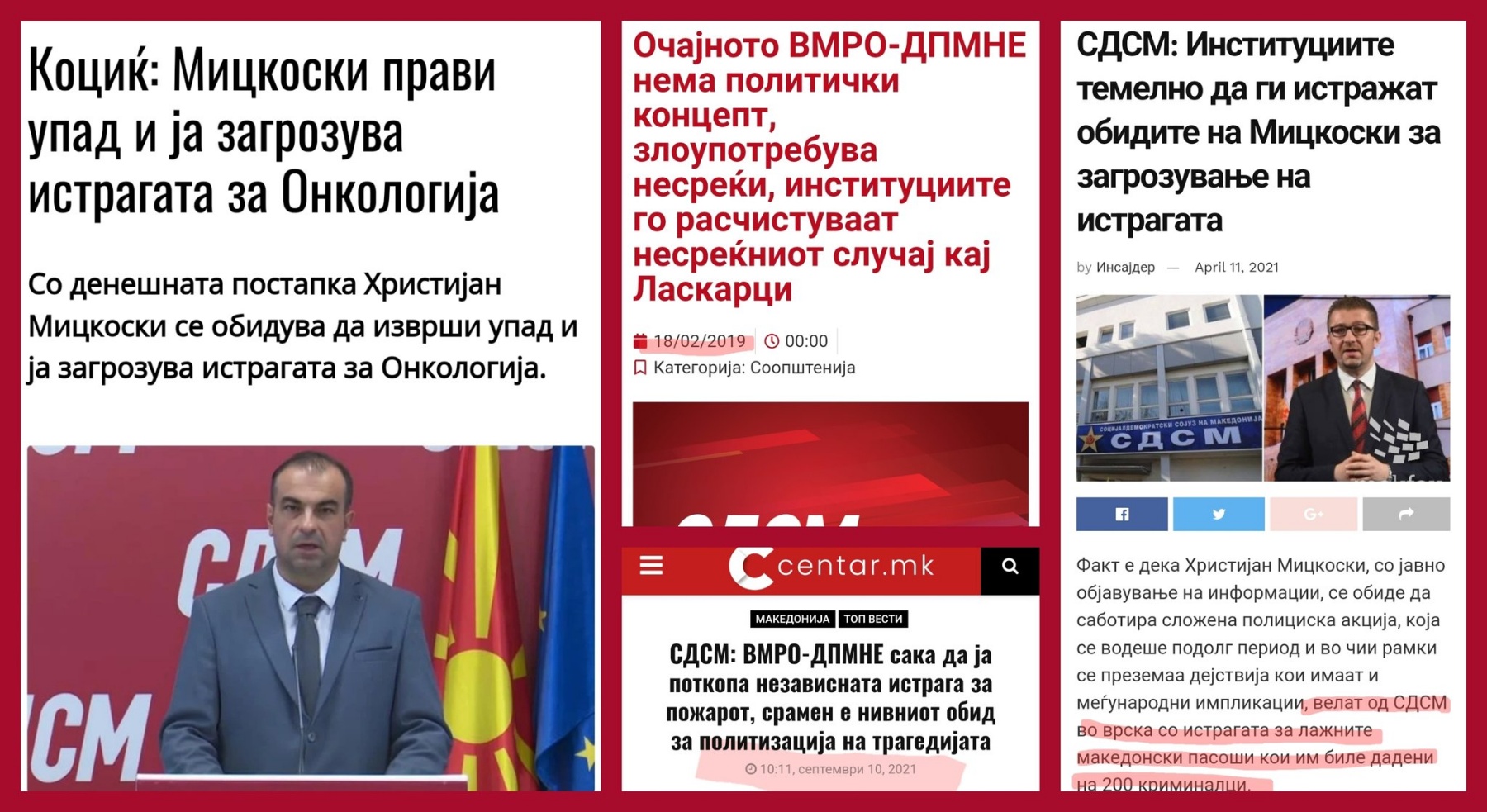 „Испумпувањето на милиони од буџетот преку фиктивни фактури за поврат на ДДВ неможело да помине без знаење на власта. И кога ВМРО-ДПМНЕ обелодени, тие се вадат дека се попречува истрагата. Не постои сериозен криминал во изминатите 7 години за кој СДС не кажало дека се злоупотребува настанот и ниту еден не е расчистен. За нив најдобро е сите да молчат и никој да не зборува за криминалот кој го прават. СДС тврдеше дека се попречува истрагата за случајот со 200 пасоши издадени на криминалци, видовме како заврши со затвор за шалтерските работници наместо оставка на Спасовски. СДС велеше дека се злоупотребуваат Ласкарци и Беса Транс, гледаме до ден денес нема одговорност од никого. СДС апелираше да не се злоупотребува случајот со Тетовската болница за на крај кабелот да биде крив. Кога беа фатени во случајот Онкологија како профитирале на болни пациенти од рак, велеа да не се злоупотребува случајот, и еве 5 месеци никако да има одговорност за било кого, а криминалот е направен, жртви има, одговорност не. Нема скандал за кој СДС не се брани дека е злоупотреба на настан или попречување на истрага. И нема скандал кој во изминативе 7 години е санкциониран. Никогаш не било полошо. Важно е да ги поразиме“, пишува партијата.