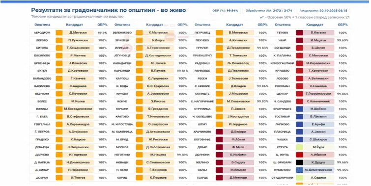ВМРО-ДПМНЕ во првиот имаат 32 градоначалници, СДСМ 3, ВЛЕН 5, а НАИ 4; Ѓорѓиевски и Мециновиќ во вториот круг за избор на градоначалник на Скопје