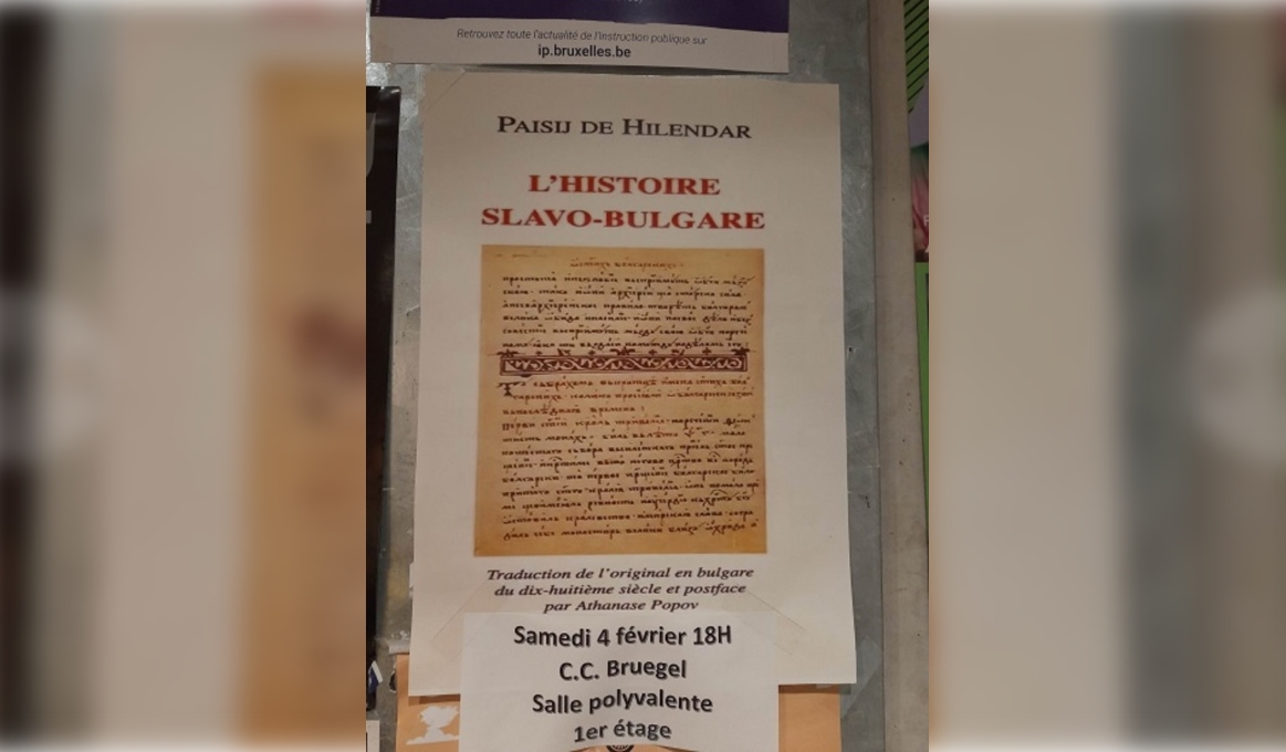 Во главниот град на Европа беше претставен единствениот француски превод на „Историja славjаноболгарска“ од ваков вид. Пред публика од Бугари и странци, преведувачот на „Историјата“ Атанас Попов раскажуваше за делото на Пајсиј Хилендарски, кое сè уште е познато и изучувано главно во Бугарија. „Самиот факт што сите Бугари слушнале за него и се способни да цитираат барем една реченица од неговото дело е доволен за да се оправда неговата презентација пред небугарската публика“, изјави Попов за БГ Свет рубриката на БТА.
