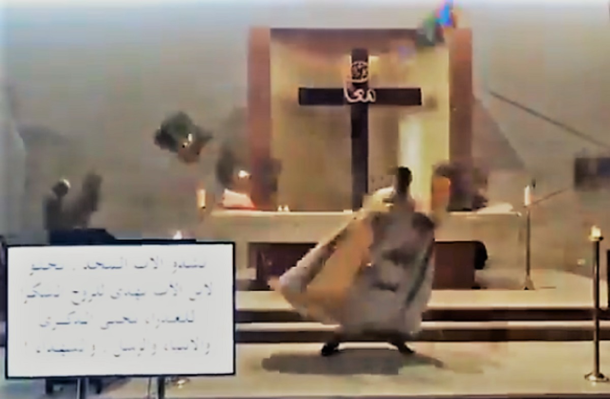 Снимката, која се шири во арапските медиуми, всушност е исечок од преносот во живо на светата миса предводена од либански свештеник. Во еден момент, се гледа како се гасат и палат светилките во црквата, а потоа силен удар ја затресол зградата од која почнале да паѓаат големи парчиња витраж над олтарот.